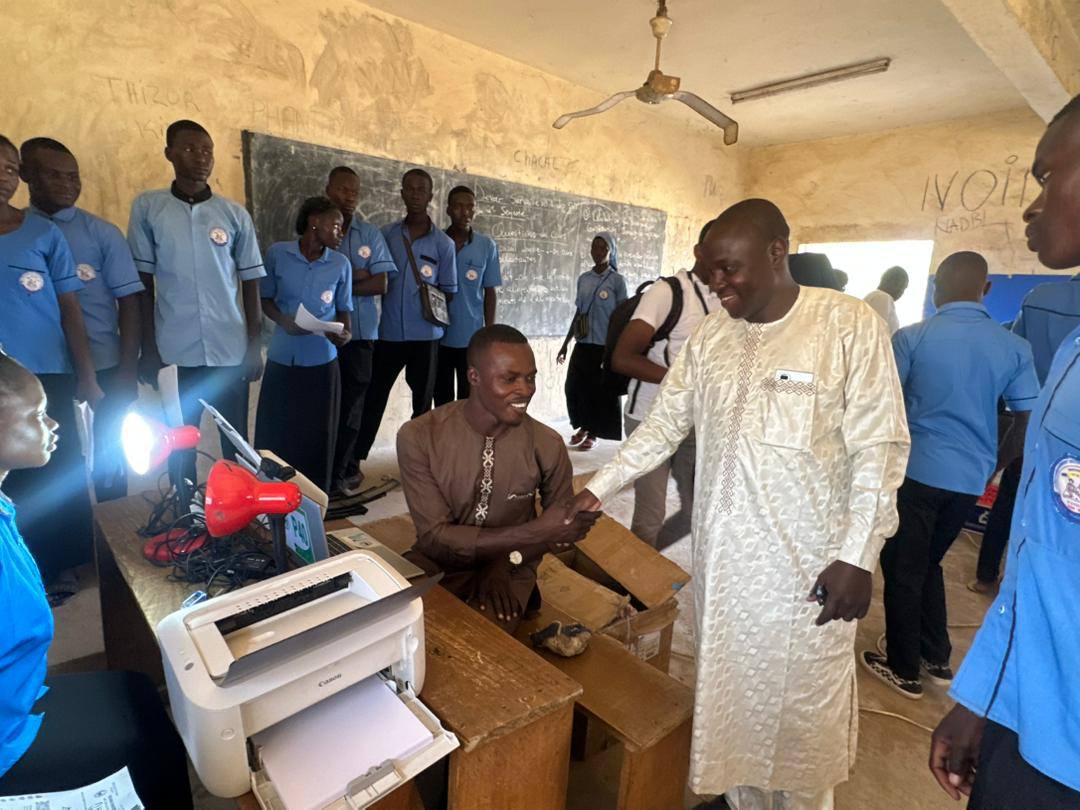 Accompagné des responsables de l’éducation locale, le Directeur des Examens et Concours de l’ONECS, M. Abakar Mahamat Hassaballah, a visité les trois sites retenus pour l’opération, à savoir les lycées Adoum Dallah, Djarabé et Technique Commercial. Cette visite de terrain avait pour objectif de s’assurer du bon déroulement du processus, et de constater la mise en œuvre des dispositions techniques et matérielles prises par l’ONECS pour garantir la fiabilité de l’enrôlement.