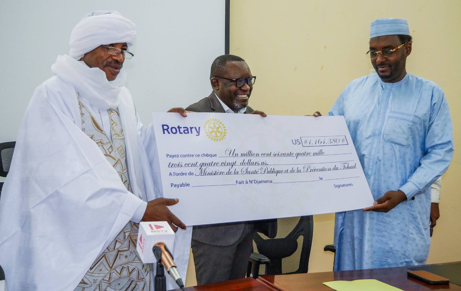 Un chèque de plus de 600 millions de FCFA a été remis au ministère de la Santé publique et de la Prévention par le Club Rotary International, afin de soutenir les efforts du gouvernement tchadien dans la lutte contre la poliomyélite.